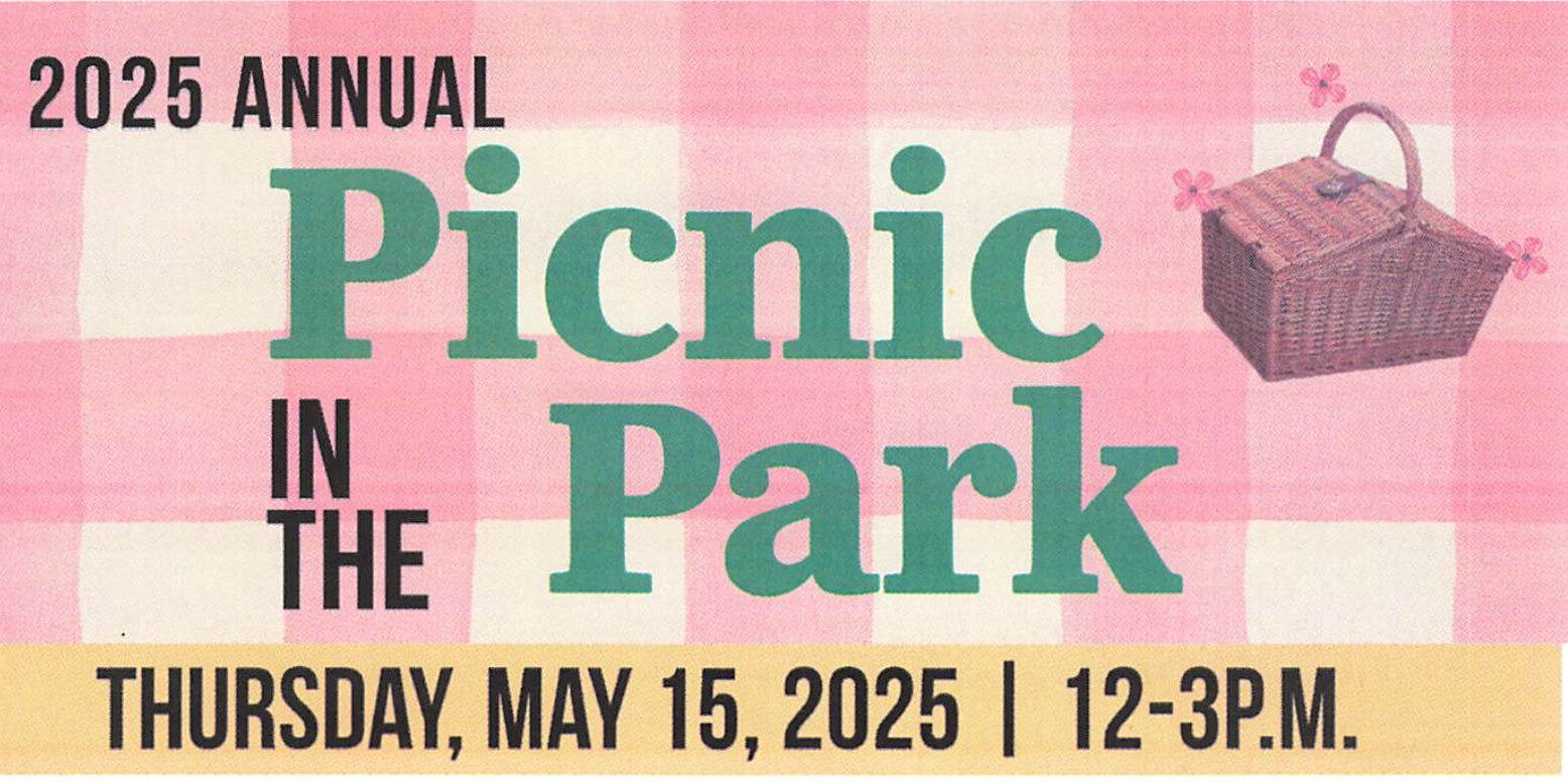 2025 Annual Picnic in the Park: Thursday, May 15, 2025 12noon – 3pm.